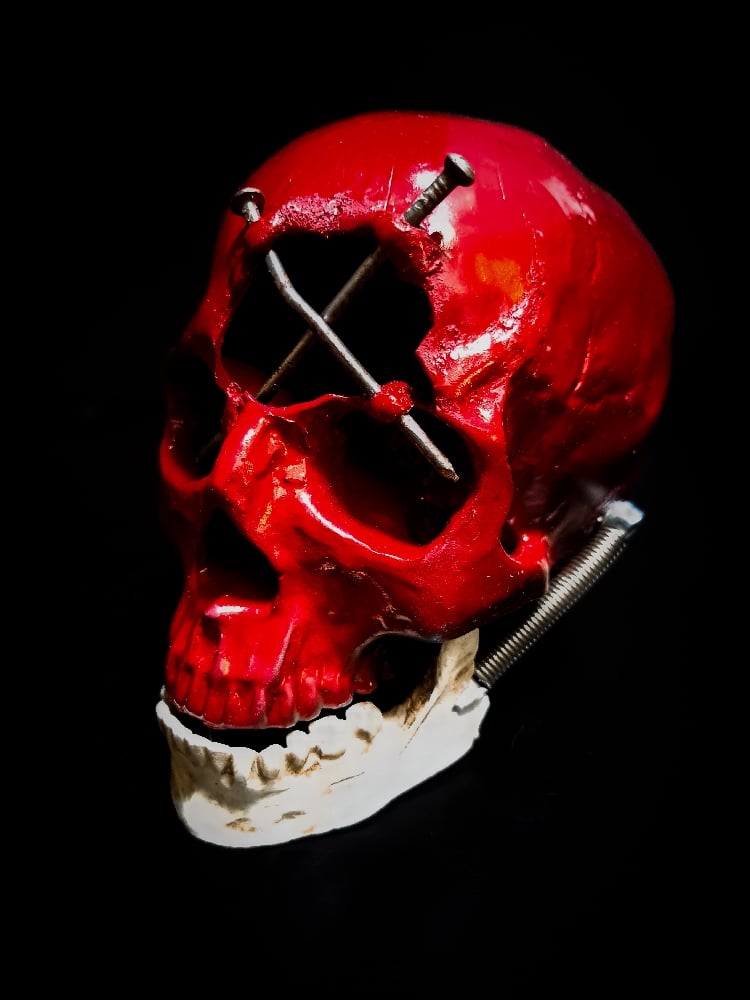 A ritual skull, symbol of transience and eternal energy, an emblem of resilience and ancient strength.